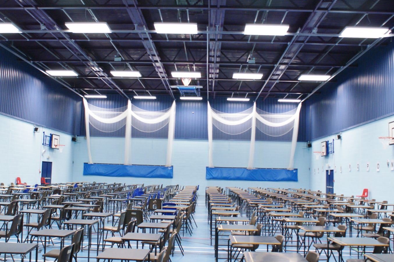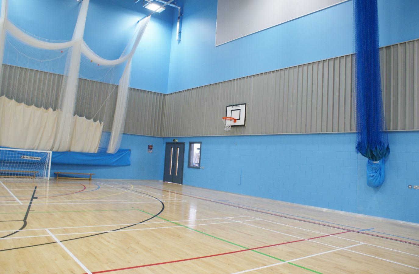 Sportsliner installed as a low level band provides sound absorption near head height in a Sports Hall