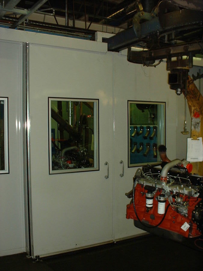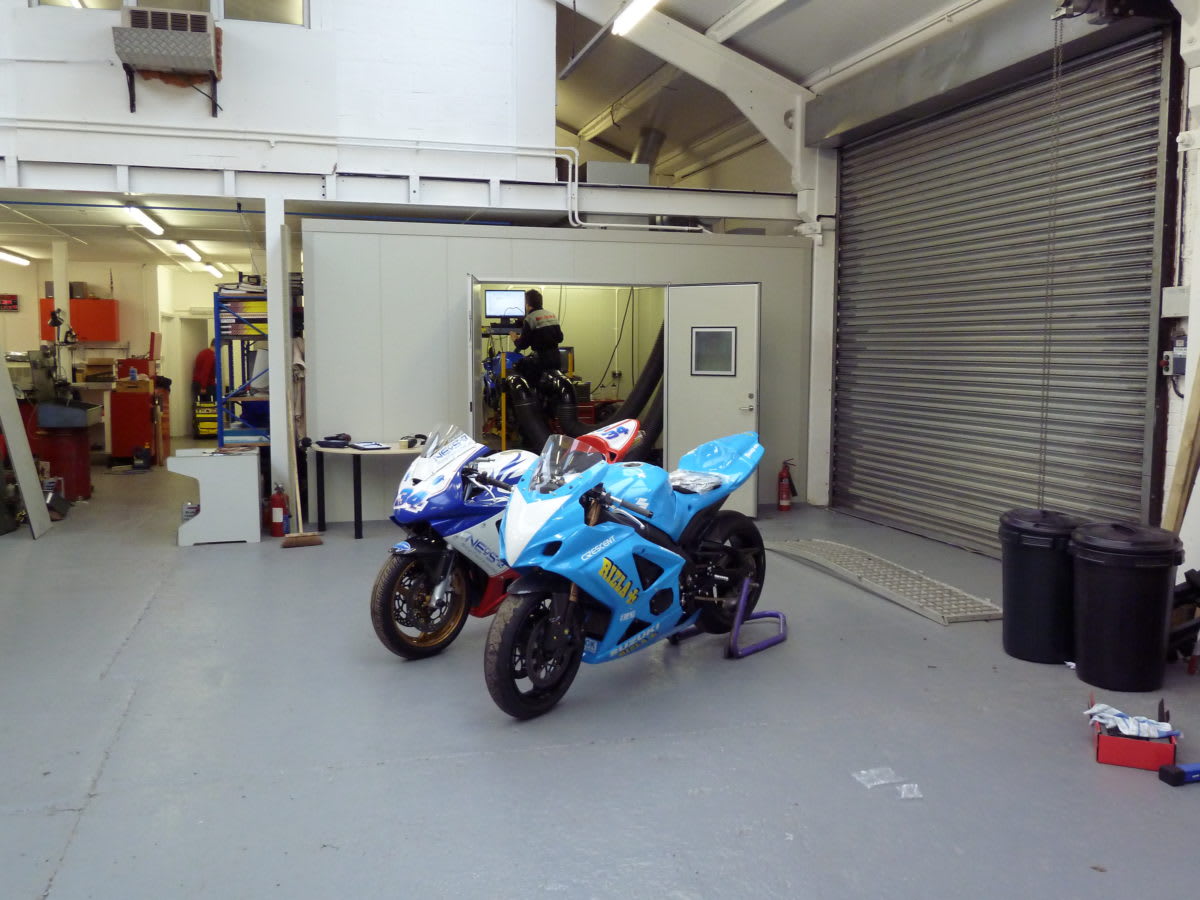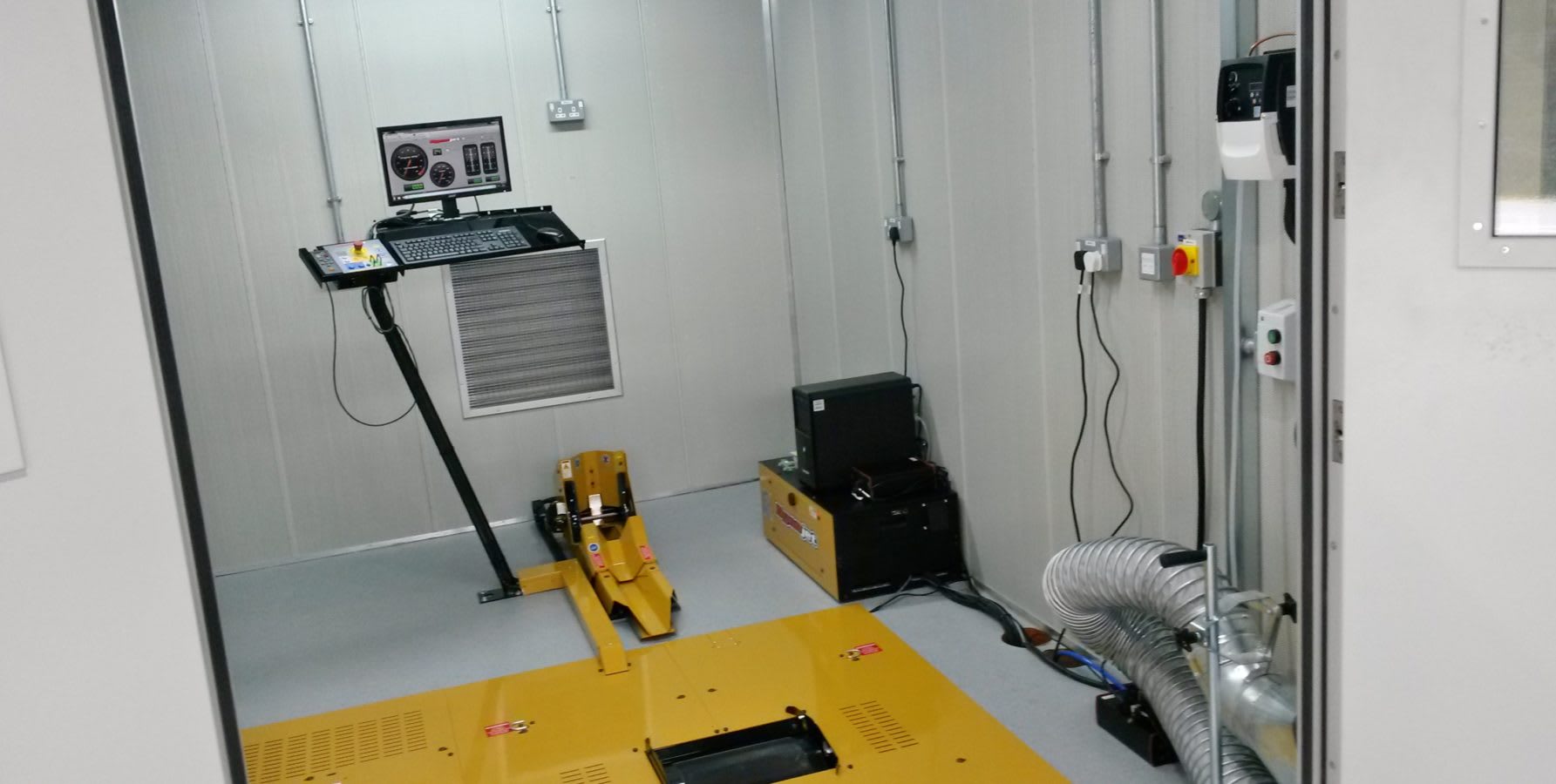PowerTest Cell with Dynamometer and Rolling Road; construction from SP Acoustic Enclosure Panels; installation by Dynojet UK