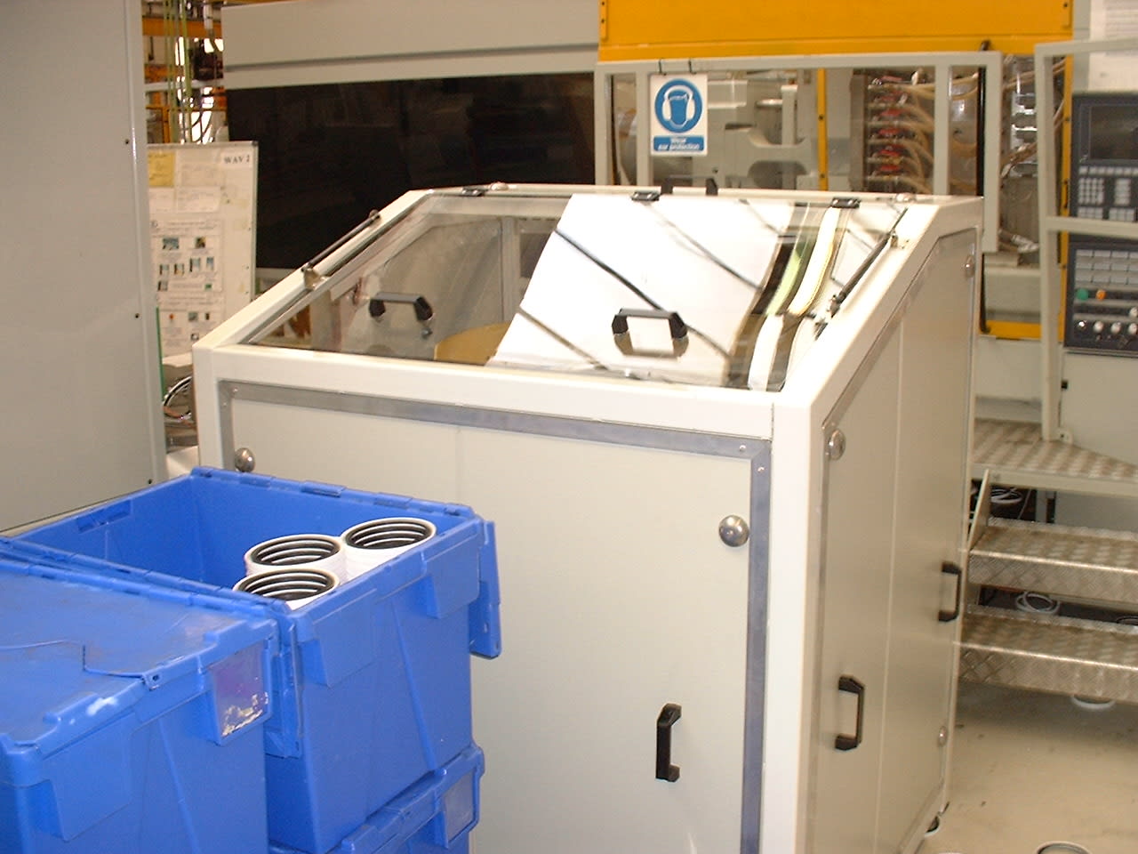 Large SP acoustic enclosure around spinning lathes. The enclosure includes increased height to accommodate a crane.